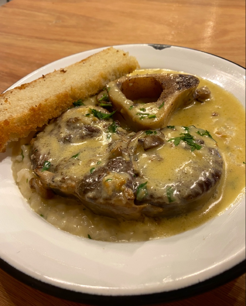 El Risotto de Osobuco es una delicia. Nos comentaron que la carne se cocina durante 3 horas. Cosa que comprobamos, ya que se deshacía sola. Muy rico de verdad! Les dejamos en fotos los precios y el menú a la fecha de Agosto 2023.